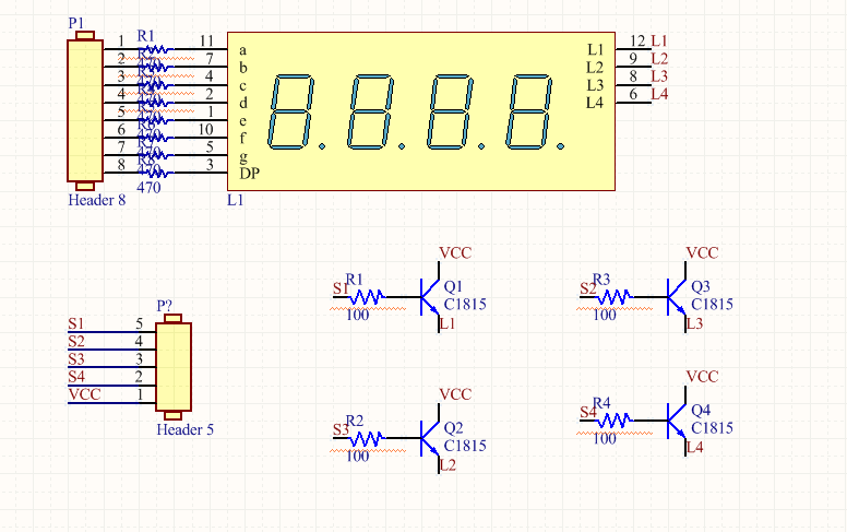 3 là em chuyển sang dùng led 7 đoạn cực âm chung, BJT NPN với sơ đồ như sau: